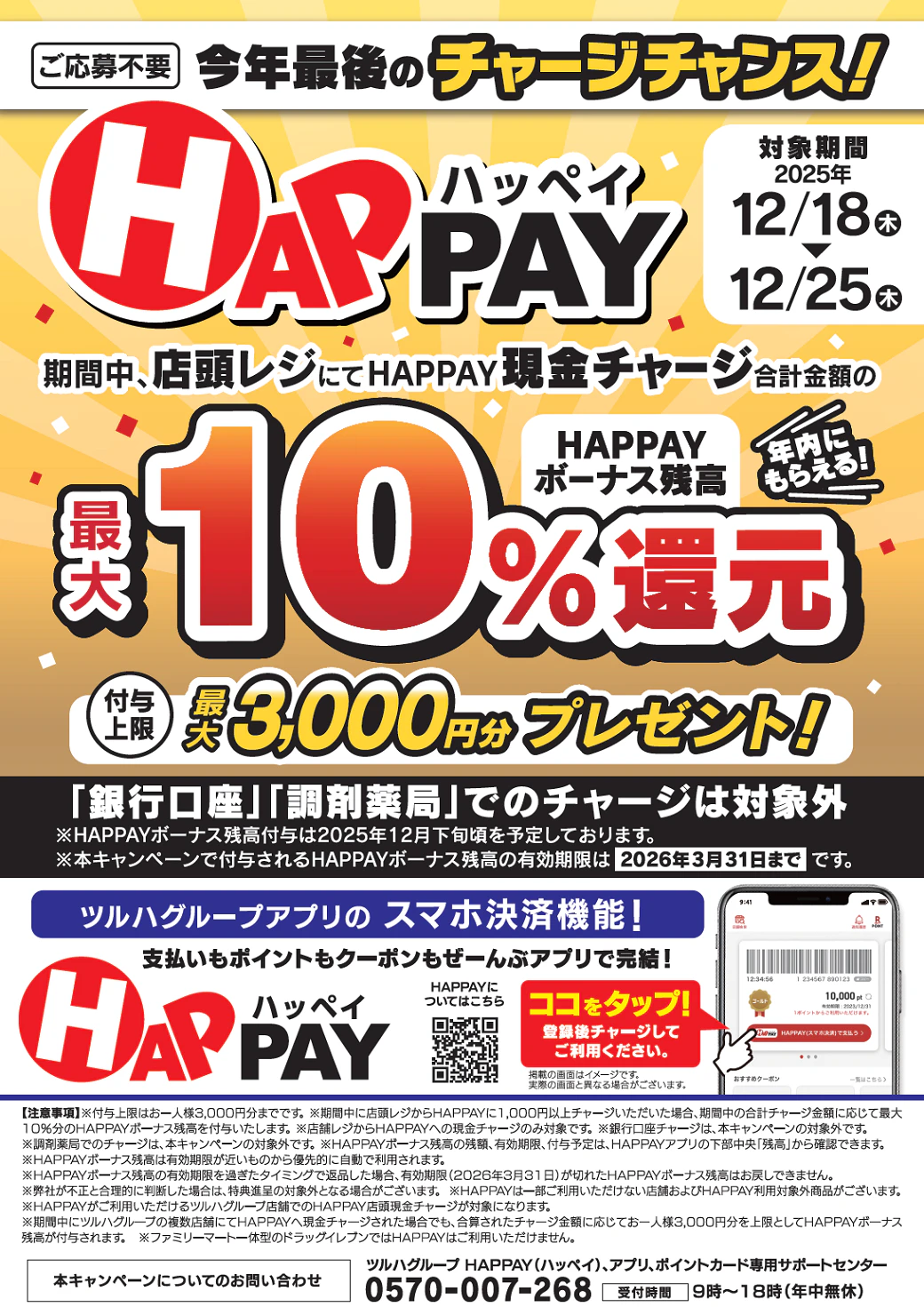 ※「HAPPAY」とは、ツルハグループが提供するスマホ決済サービスです。